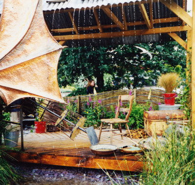 The Dragon Makers Yard was a garden for the future with reference to the past. Most of the planting and materials for the garden were representative of upland Wales where coppersmith Richard Taylor crafted the dragon. It included a lot of native spices with a few quirky additions. The theme of planting was one of self seeding to show natures continuity.